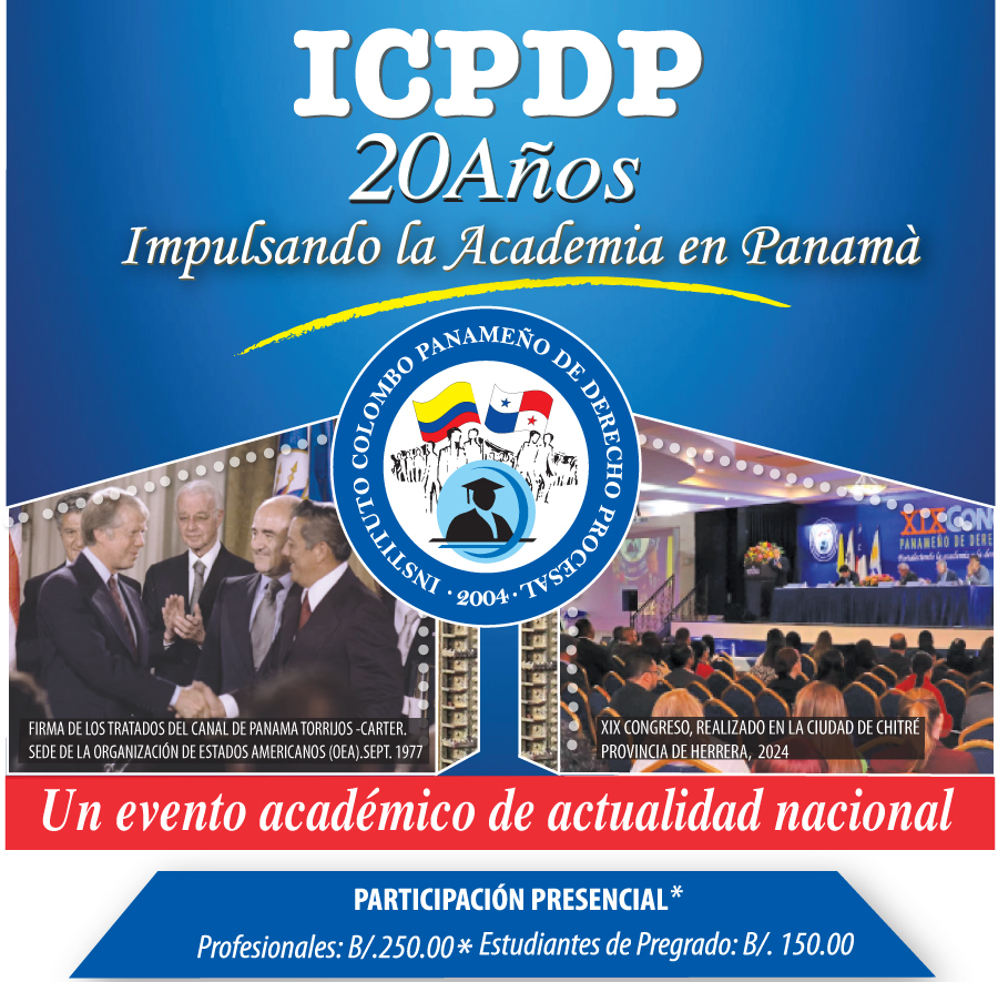 Después de un éxito total del XIX Congreso en el interior del país en el 2024, regresamos a la ciudad de Panamá los días 30, 31 de julio y 1° de agosto del presente año en el Salón Bella Vista del Hotel El Panamá para este grandioso Congreso Internacional, celebrando los 20 AÑOS de academia del ICPD. Espera muy pronto toda la información sobre el evento anual más importante del mundo jurídico en Panamá: horario, invitados, conferencistas, inscripción, costos, patrocionios, homenajes y mucho más.